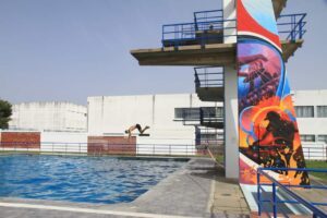 O Espaço tem balneários Públicos e Chuveiros , Bar de Apoio das Piscinas e Street Food na zona de Campismo.